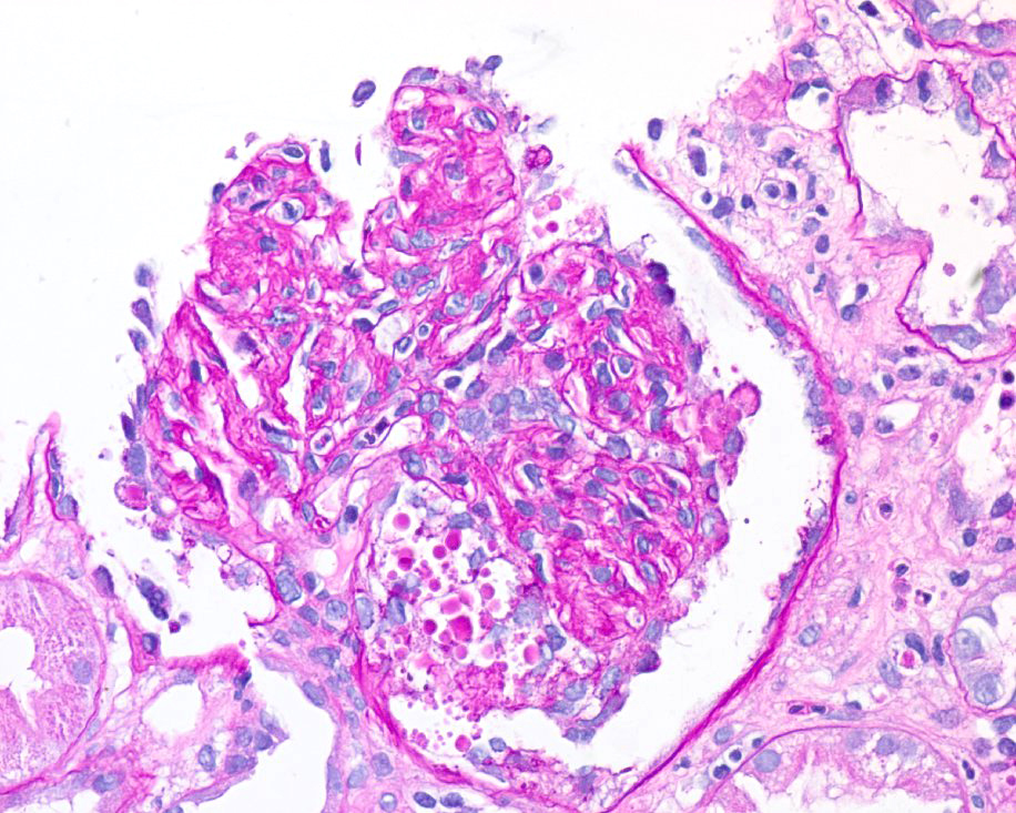 How about our patient with COVID-19 and nephrotic syndrome? The biopsy reveals collapsing FSGS!